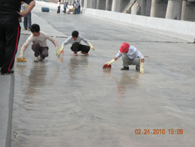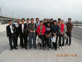 2010年2月24日,公司領(lǐng)導(dǎo)和業(yè)務(wù)員一起到廣珠輕軌工地現(xiàn)場參觀實習(xí)。 工人用專業(yè)設(shè)備處理基面 打底漆