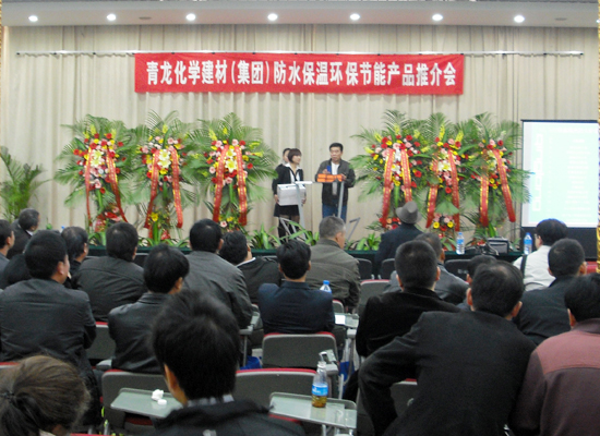 10月28日下午,青龍化學(xué)建材(集團)公司防水保溫環(huán)保節(jié)能產(chǎn)品推介會在云南昆明舉行,公司董事長宋敦清先生出席會議并作重要講話,公司常務(wù)副總陳經(jīng)富先生主持會議,技術(shù)總工徐新生先生作新型防水材料與EVB保溫隔熱產(chǎn)品技術(shù)講解,來自省內(nèi)的各建筑的項目經(jīng)理150余人聽取了講座。