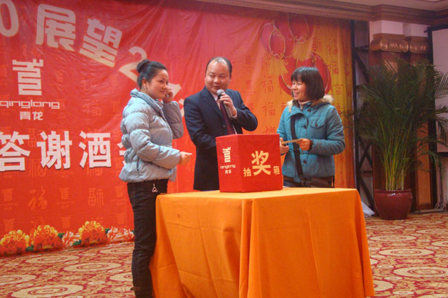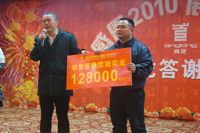 會(huì)上,青龍公司重點(diǎn)表彰了優(yōu)秀代理商代表和企業(yè)優(yōu)秀員工,其中對(duì)廣西青龍公司曾知博經(jīng)理個(gè)人銷售管理績(jī)效獎(jiǎng)金高達(dá)12.8萬元,曾總發(fā)表感言說,青龍公司是個(gè)一個(gè)重信譽(yù),講誠(chéng)信,有實(shí)力的企業(yè),非常感謝青龍能給自己這樣一個(gè)實(shí)現(xiàn)自我價(jià)值的平臺(tái),并表示愿意和廣西青龍廣大同仁一起努力拼搏,2011年再創(chuàng)輝煌。