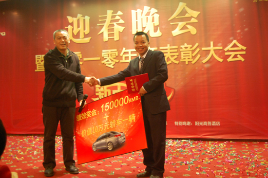 練祖耀(圖右),男,27歲,2009年9月加入青龍營銷團(tuán)隊(duì),經(jīng)過自己勤奮學(xué)習(xí),積極進(jìn)取,2010年個(gè)人業(yè)績榮膺榜首,獲青龍"優(yōu)秀業(yè)務(wù)員"稱號,年終青龍董事長宋敦清先生(圖左)獎(jiǎng)其現(xiàn)金15萬和價(jià)值10萬元小車一輛。