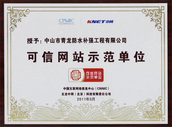 2010年10月29日,中國省級"可信網站示范工程"試點已在廣東啟動,首批"可信網站示范單位"也同期評出。國內建筑防水、保溫、加固、GRC裝飾材料集大成者,國內較大的EVB保溫砂漿生產商,高新技術企業(yè)——青龍化建(