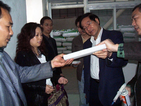 3月31日上午,南寧市科技局黨組副書記、副局長(zhǎng)施居府,在青龍公司、科技局有關(guān)領(lǐng)導(dǎo)的陪同下,深入到我公司生產(chǎn)基地——廣西青龍化學(xué)建材有限公司(市隆安華僑經(jīng)濟(jì)開發(fā)區(qū)),就我公司的PVA-ECC高韌性纖維水泥基復(fù)合材料產(chǎn)品的研發(fā)與產(chǎn)業(yè)化項(xiàng)目進(jìn)行實(shí)地調(diào)研。