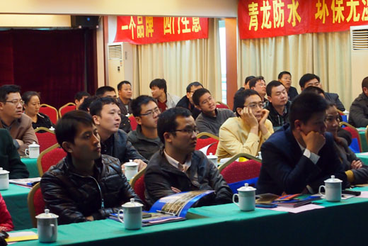 黎世鷹先生則主講了青龍公司“一個品牌,四門生意”的招商加盟政策,他分析了青龍公司從事的防水、保溫、加固、GRC歐式構(gòu)件行業(yè)的發(fā)展前景、行業(yè)現(xiàn)狀,并且從現(xiàn)有的加盟代理商的致富經(jīng)驗(yàn)出發(fā),詳細(xì)地介紹了青龍公司的招商加盟計(jì)劃。他的講解受到了在場觀眾的熱捧,他們紛紛表示會認(rèn)真考慮跟青龍公司的合作。