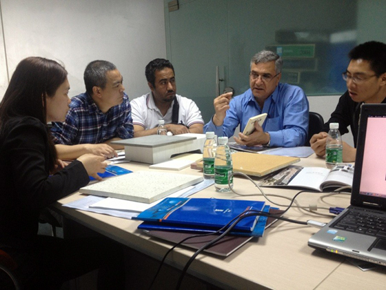 2013年3月13日,來自迪拜某建筑公司的工程部經(jīng)理Amer adbis慕名前來考察青龍建材,公司董事長宋敦清先生親自接待了他??疾爝^后,Amer adbis 對青龍公司的生產(chǎn)實力和產(chǎn)品工藝都表示非常認同,并表達了和青龍公司合作的強烈意愿。