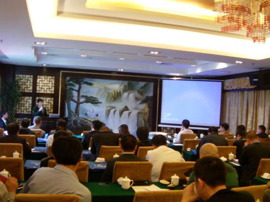 接下來,青龍集團營銷總監(jiān)王定中先生與參會者探討了建材行業(yè)的發(fā)展狀況,并就青龍公司“一個品牌,四門生意”的招商加盟政策做了詳細的介紹。
