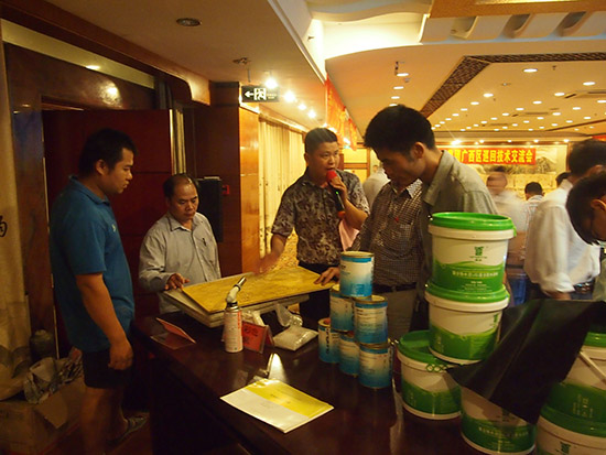 在近3個(gè)小時(shí)的推廣會(huì)中,廣西青龍中區(qū)域經(jīng)理黎世鷹以廣西玉林的建材市場(chǎng)的現(xiàn)狀為例,為大家解析了建材行業(yè)未來(lái)的發(fā)展前景,并就青龍建材公司“一個(gè)品牌,四門生意”的招商加盟政策做了詳細(xì)的介紹。青龍集團(tuán)防水保溫技術(shù)總工程師徐新生則深入地剖析了青龍牌新的型反應(yīng)交叉膜自粘防水卷材、防水涂料(青龍牌防水密封涂料)、EVB高強(qiáng)保溫隔熱板等產(chǎn)品的特點(diǎn)及應(yīng)用,幫助與會(huì)者更好地了解青龍建材的主推產(chǎn)品。而廣西青龍GRC技術(shù)工程師李運(yùn)旺為參會(huì)者進(jìn)行講解GRC歐式構(gòu)件生產(chǎn)、技術(shù)、認(rèn)識(shí)誤區(qū)、前景等內(nèi)容。此次技術(shù)交流會(huì)全面、深刻,使得參會(huì)者對(duì)青龍企業(yè),招商計(jì)劃,產(chǎn)品技術(shù)等問(wèn)題有了進(jìn)一步的了解,也受到了在場(chǎng)人員的贊賞。