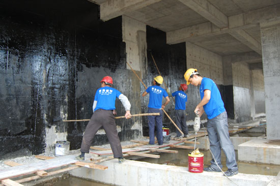 龍灣國(guó)際項(xiàng)目防水面積達(dá)5萬(wàn)㎡,施工部位為地下室剪力墻與頂板,采用了青龍911聚氨酯防水涂料(CQ107)與聚乙烯丙綸,由于連續(xù)降雨,地下室長(zhǎng)期處于浸水狀態(tài),給施工帶來(lái)了一定難度,但青龍人認(rèn)真對(duì)待每一施工細(xì)節(jié),保證工期內(nèi)圓滿完成,目前地下室防水已經(jīng)接近尾聲,獲得了甲方的一致認(rèn)可。
