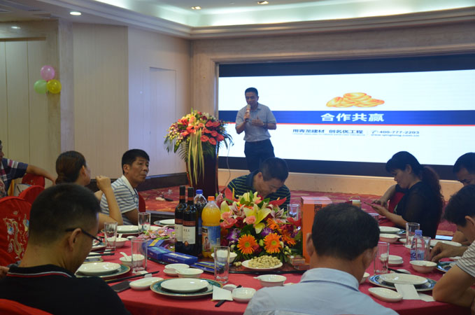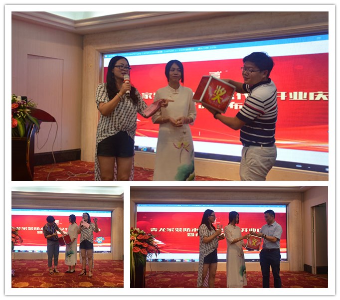 在答謝午宴上,賓客滿席,董老板、青龍營銷總監(jiān)賀總、青龍家裝營銷于總、青龍質(zhì)量總監(jiān)張總和專賣店技術工程師周工分別上臺進行了分享。午宴中還穿插了精彩的文藝節(jié)目和豐富的活動,將現(xiàn)場氛圍推向高潮。廣大來賓在一片歡聲笑語中,不僅學習了更多的創(chuàng)業(yè)經(jīng)驗和防水知識,也拓展了人際網(wǎng)絡,愉快地度過了這個美好的正午。