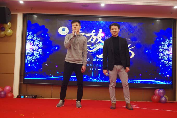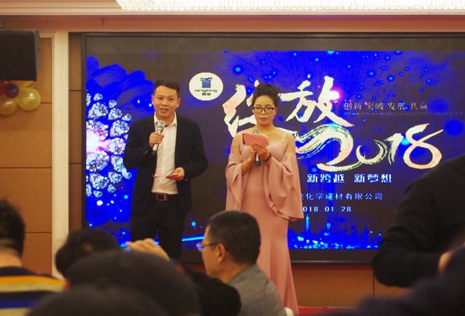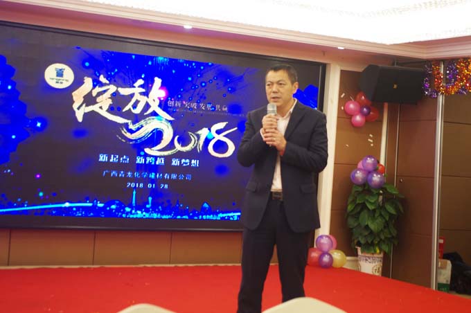 年會在公司董事長宋董的致辭中,拉大盛幕。宋董總結(jié)了2017年公司的收獲,公司整體業(yè)務(wù)增長30%以上,成長趨勢好;特別是8月26日以來,新成立的家裝事業(yè)部,新零售店招商勢頭發(fā)展迅猛至1月份,合作及加盟商將近100家。同時展望2018,希望大家一起努力,讓公司更快更好的發(fā)展。特別是家裝提出招募目標(biāo)500家新零售加盟商,達(dá)到行業(yè)一線品牌。對工程防水和GRC業(yè)務(wù),也提出了目標(biāo)整體在2017年的基礎(chǔ)上30%以上增長,要實現(xiàn)公司業(yè)務(wù)結(jié)構(gòu)跨越式發(fā)展步伐。青龍公司籌劃上市鼓舞著每一位青龍員工士氣,為防水事業(yè)做出不懈努力,帶領(lǐng)大家賺大錢。