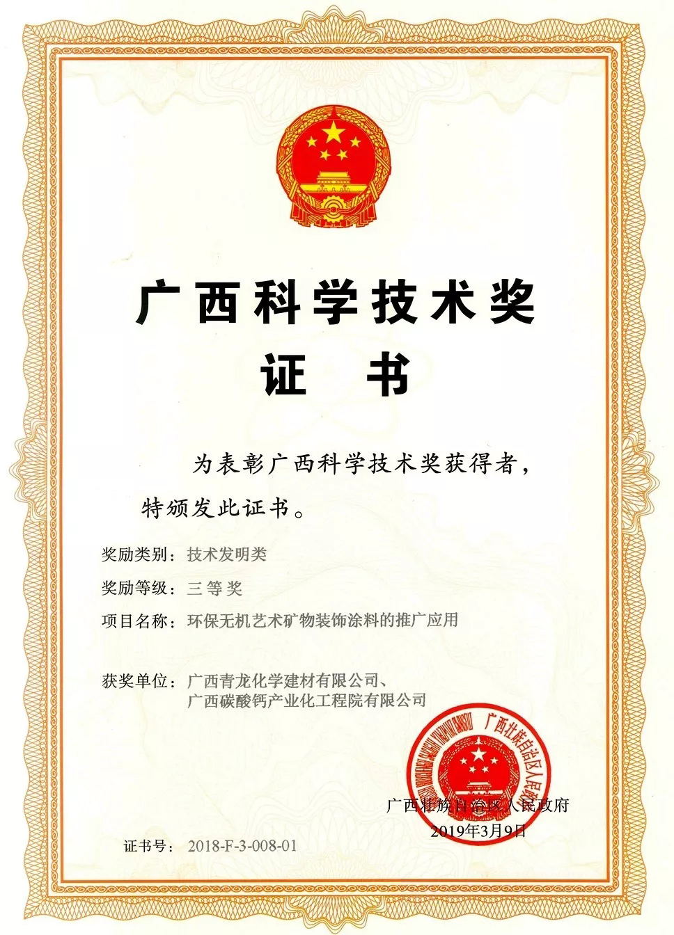 青龍公司榮獲廣西科學(xué)技術(shù)獎技術(shù)發(fā)明類三等獎。
