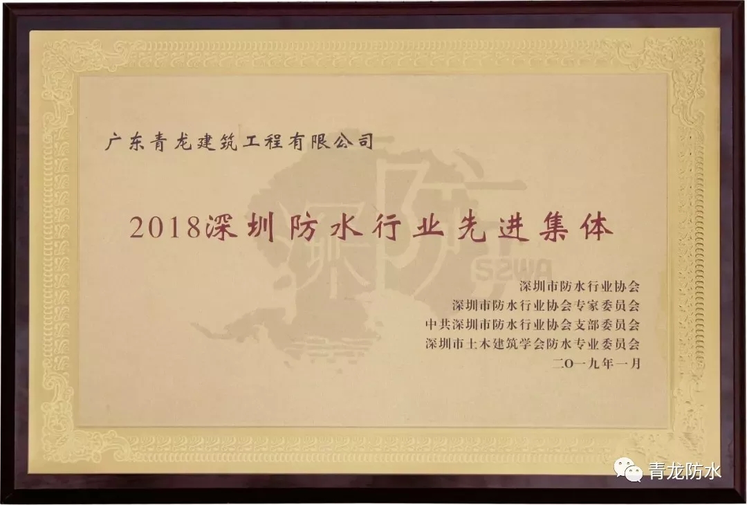 04、2019年1月 | 榮獲"2018年深圳防水行業(yè)先進集體獎"