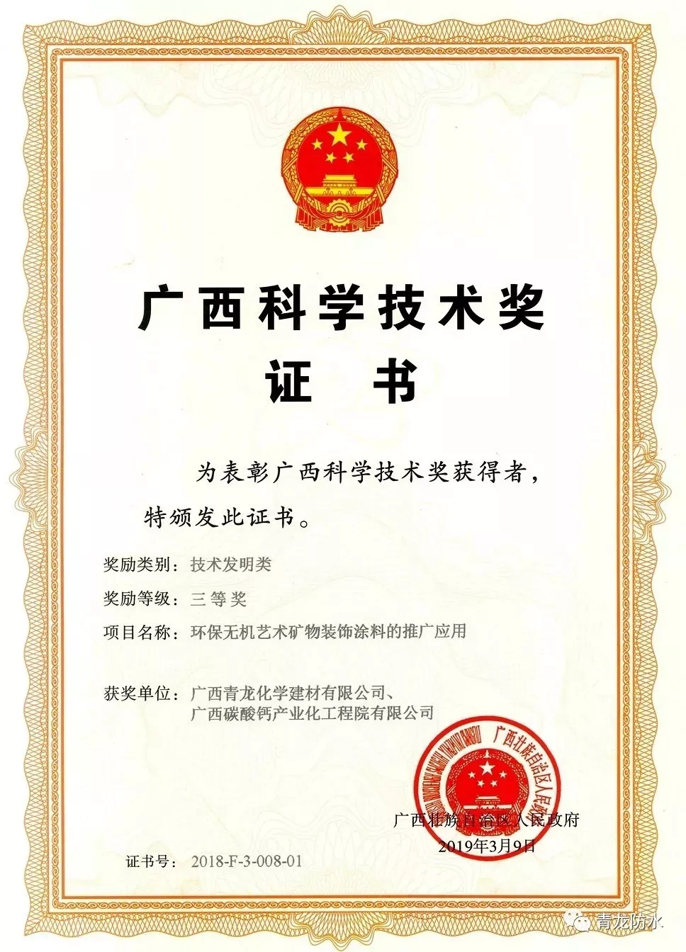 4月9日在廣西科學技術(shù)獎勵大會上,青龍公司榮獲2018 年度獲得廣西科學技術(shù)獎技術(shù)發(fā)明類三等獎。