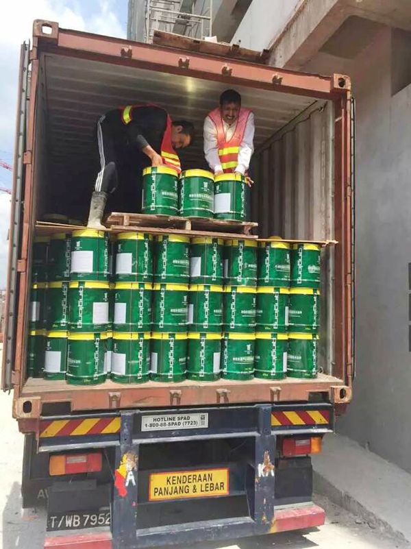 近日,青龍公司出口馬來西亞的一個貨柜終于順利到達(dá)新山市金海灣工地,卸貨時一桶桶青龍防水涂料,特別引人注目,這標(biāo)志著青龍集團(tuán)在拓展海外市場的進(jìn)程中取得了重大進(jìn)展,彰顯了青龍集團(tuán)的國際影響力。