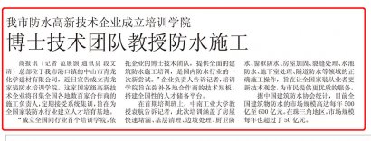 【中山商報(bào)報(bào)道】我市防水高新技術(shù)企業(yè)成立培訓(xùn)學(xué)院 博士技術(shù)團(tuán)隊(duì)教授防水施工