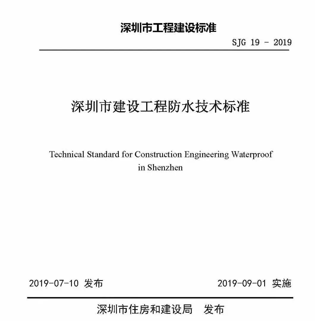 7月初,深圳市住房和建設(shè)局正式發(fā)布《深圳市建設(shè)工程防水技術(shù)標準》SJG19-2019。