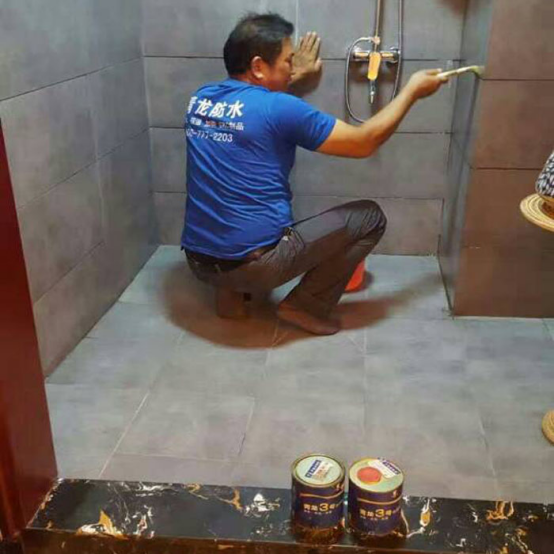 3、用毛刷將青龍3號(hào)防水膠涂刷于墻面,飾面磚接縫處或需要防水的部位;