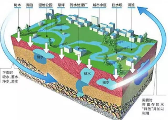(1)海棉城市,是新一代城市雨洪管理概念,是指城市在適應(yīng)環(huán)境變化和應(yīng)對雨水帶來的自然災(zāi)害等方面具有良好的"彈性",也可稱之為"水彈性城市",國際通用術(shù)語為"低影響開發(fā)雨水系統(tǒng)構(gòu)建"。下雨時吸水、蓄水、滲水、凈水,需要的時候?qū)π畹挠晁?釋放"并加以利用。國務(wù)院辦公廳出臺"關(guān)于推進海綿城市建設(shè)的指導意見"指出,采用滲、滯、蓄、凈、用、排等措施,將70%的降的就地消納和利用。