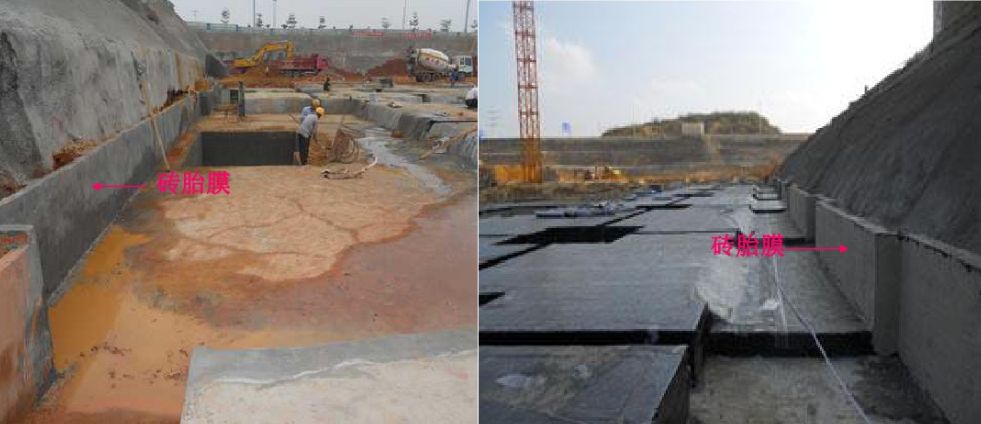 2、磚胎膜(亦稱臨時(shí)擋土墻):磚胎模一般用于地下室底板側(cè)壁,由于是外防水,須在墊層上做防水,且防水要延伸到磚胎膜上,以便以后澆注完混凝土后,防水能上翻到側(cè)壁混凝土上,如果底板側(cè)壁用模板的話,無法做防水,所以采用了用磚做模板的辦法。另外在一些澆完混凝土后模板無法拆除或者拆除難度很大的地方也有采用磚來代替一 般模板的辦法。