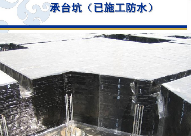 2、預(yù)鋪反粘 ——將附有高分子自粘膠膜層的防水卷材空鋪在基面上,然后澆筑結(jié)構(gòu)混凝土,使混凝土漿料與卷材自粘膠膜層緊密結(jié)合的施工方法。