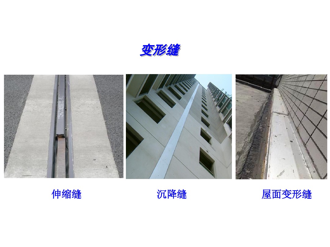 8、變形縫:變形縫是伸縮縫(溫度縫)、沉降縫和抗震縫的總稱。①伸縮縫是指為克服建筑物構(gòu)件由于氣候溫度變化(熱脹冷縮),而設(shè)置的縫基礎(chǔ)不斷開(受溫差影響?。?。②沉降縫是為克服建筑物結(jié)構(gòu)由于地基不均勻沉降引起房屋破壞而設(shè)置的垂直縫,從基礎(chǔ)到上部結(jié)構(gòu)全部分開。③抗震縫是指避免建筑物破壞,按抗震要求設(shè)置的垂直的構(gòu)造縫。