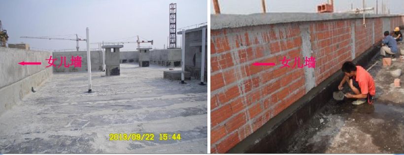 9、女兒墻:指的是建筑物屋頂外圍的矮墻,除了護(hù)欄作用外,還起到給平面防水層上翻收口,以避免防水層滲水或是屋頂雨水漫流。依建筑技術(shù)規(guī)則規(guī)定,女兒墻被視作欄桿的作用,如建筑物在10層樓以上高度不得小于1.2m,為避免業(yè)者刻意加高女兒墻,方便以后搭蓋違建,亦規(guī)定高度最高不得超過1.5m。