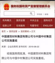 強(qiáng)強(qiáng)聯(lián)合,兩大建材央企重組,合并后將成為全球建材行業(yè)第一