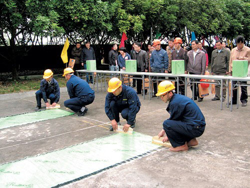 防水材料與施工工藝示范觀摩會(huì)。當(dāng)日上午9時(shí)許,觀摩會(huì)現(xiàn)場(chǎng)工作人員展示防水施工現(xiàn)象,吸引了全場(chǎng)300多名參觀人員的眼球。主辦方通過展示各種防水材料在陰角、陽角、及管根邊等易滲、漏水的細(xì)部節(jié)點(diǎn)規(guī)范化施工工藝,推行標(biāo)準(zhǔn)化施工工藝以及簡(jiǎn)單可靠的防水驗(yàn)收方法,為在場(chǎng)的參觀人員上了生動(dòng)的一課。