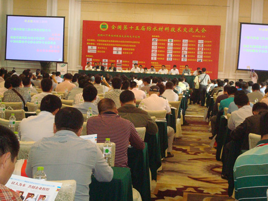 由中國硅酸鹽學(xué)會房建材料分會防水材料專業(yè)委員會主辦的第十五屆全國防水材料技術(shù)交流大會于2013年5月18-20日在長沙隆重召開,來自全國各地有關(guān)建筑防水堵漏材料及其原材料生產(chǎn)、工程施工、防水社團組織等單位的500多名代表出席了大會。